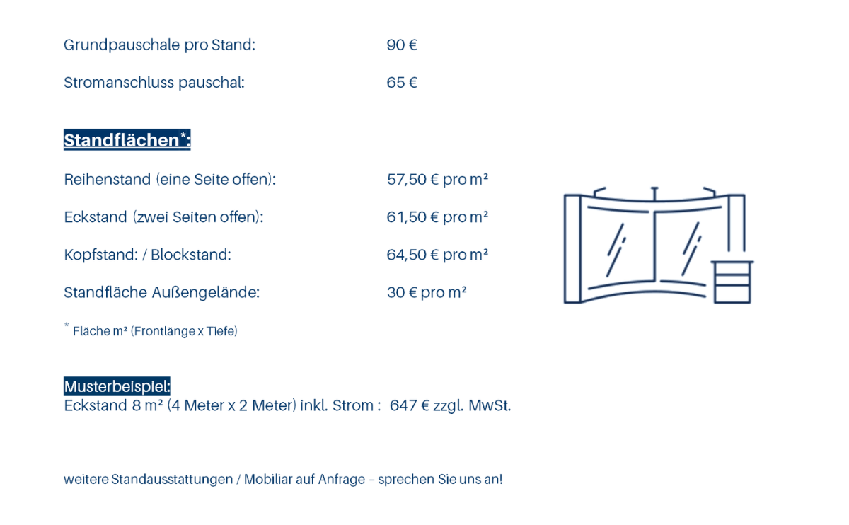 Für Aussteller bieten wir attraktive Teilnahmemöglichkeiten, um ihr Unternehmen und Ihre Angebote und Leistungen zu präsentieren.
